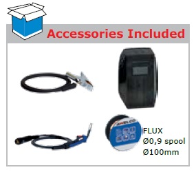 Περιλαμβάνει πιστόλι σύρματος (MIG), σώμα συγκόλλησης, βουρτσάκι, μάσκα και σύρμα.