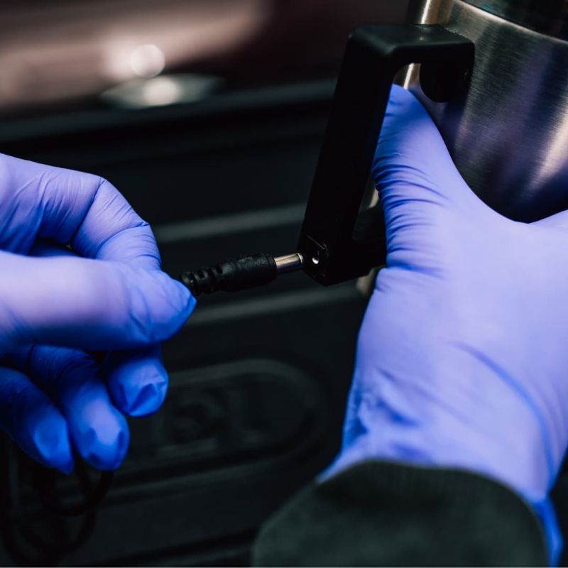 Το υγρό πολυανθρακικό θερμαίνεται στο ειδικό δοχείο “λυχνάρι” και στη συνέχεια εφαρμόζουμε τον ατμό του στην κατεστραμμένη επιφάνεια, αποκαθιστώντας και ανακατασκευάζοντας τους. Οι προβολείς αναγεννιόνται με αυτόν τον τρόπο και ανακτούν την αρχική τους εμφάνιση.