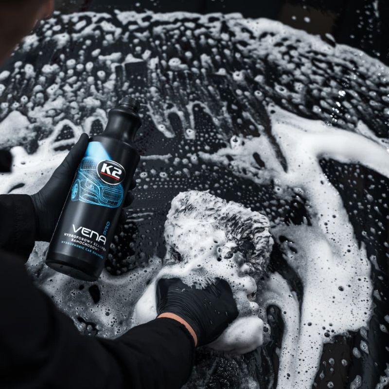 Το υδατοαπωθητικό σαμπουάν αυτοκινήτου K2 Vena Pro με ειδικές ιδιότητες είναι απολύτως ασφαλές για τα προστατευτικά επιχρίσματα στο χρώμα, πλήρως ασφαλές όταν έρχεται σε επαφή με προστατευτικό κερί ή κεραμικό επίχρισμα. Δημιουργεί με την υδατοαπωθητική του ιδιότητα ένα αόρατο στρώμα που βοηθά στην αποστράγγιση και το στέγνωμα του νερού από το χρώμα.