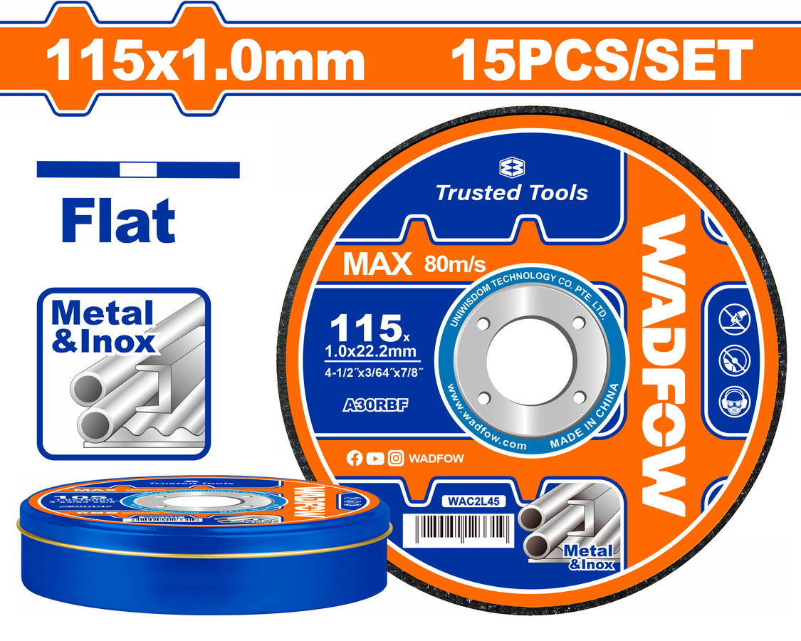 WADFOW ΔΙΣΚΟΣ ΚΟΠΗΣ ΙΝΟΧ/ΜΕΤΑΛΛΟΥ ΙΣΙΟΣ 115 Χ 1mm 15ΤΕΜ ΣΕ ΜΕΤΑΛΛΙΚΟ ΚΟΥΤΑΚΙ (WAC2L45)
