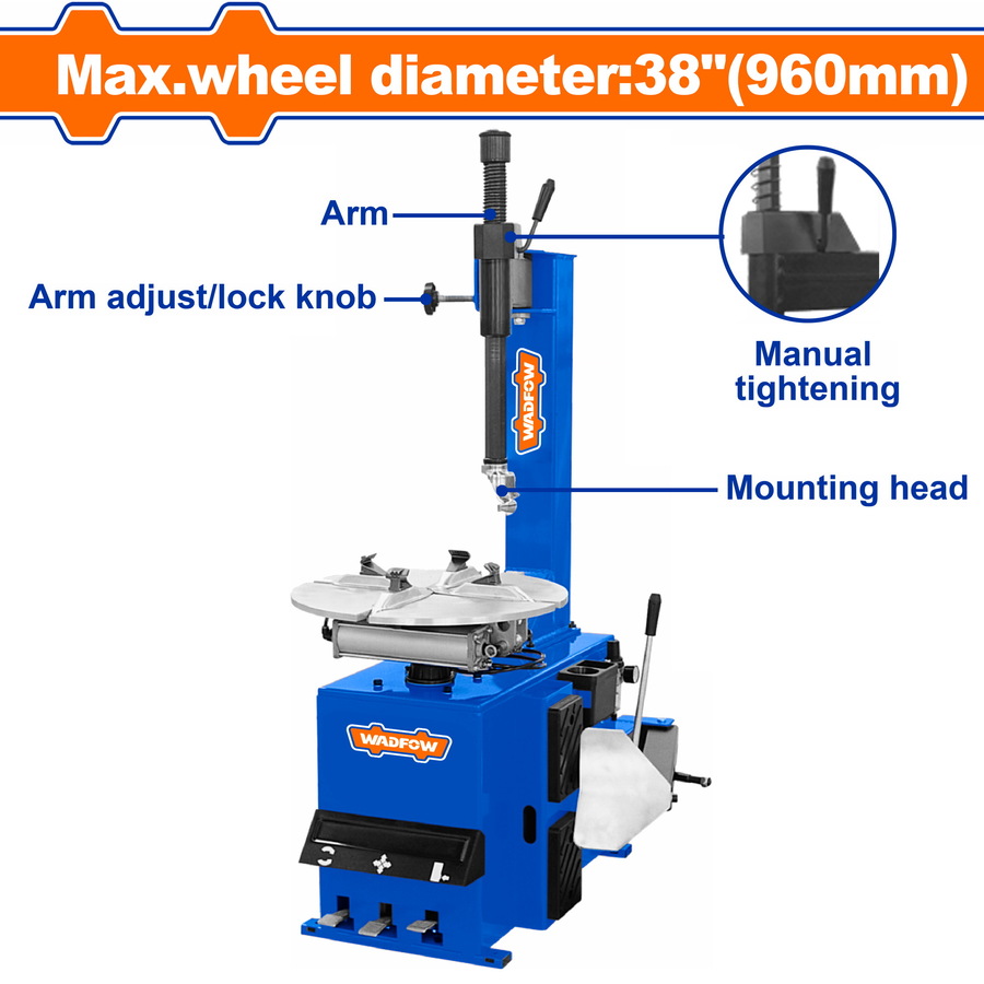 | Ημιαυτόματο πλευρικό βραχίονα αιώρησης | Ισχύς κινητήρα : 0,75Kw | Τάση : 220-240V~50Hz | Μέγιστη διάμετρος τροχού : 38 (960mm)